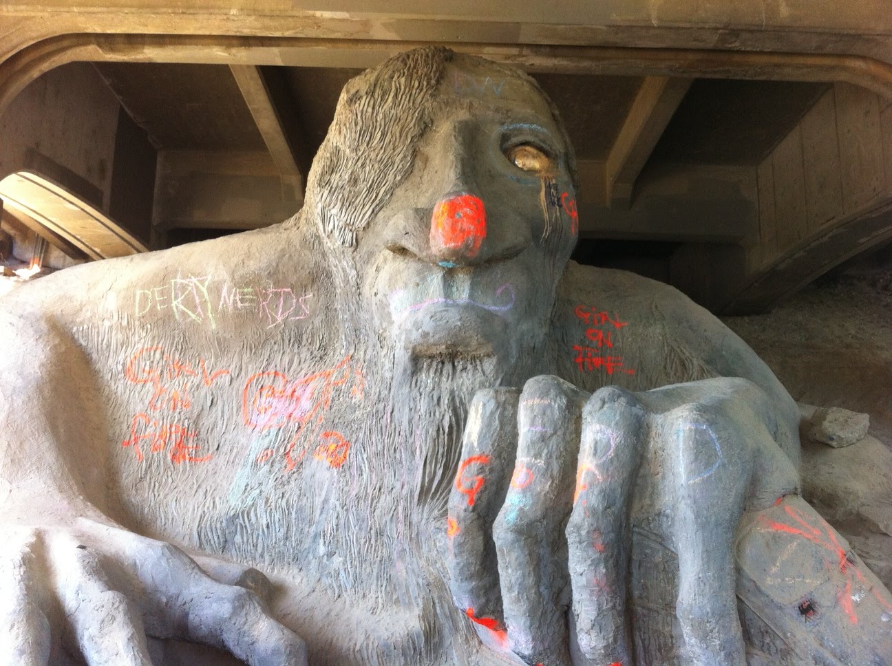 We also visited the quirkier side of Seattle. Although I'm thinking that many parts of Seattle could actually be considered quirky.This is a sculpture called the fremont troll, and he lives under a bridge.